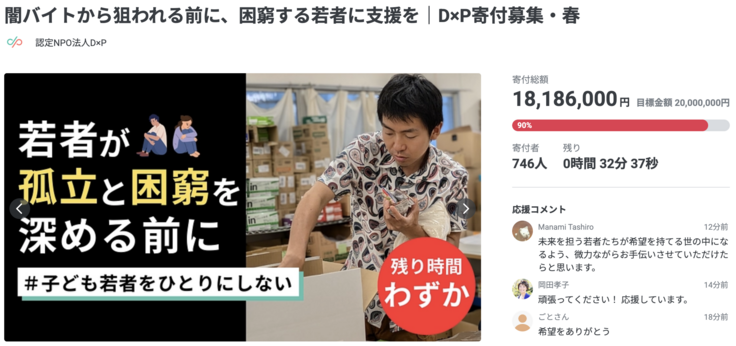 闇バイトから狙われる前に、困窮する若者に支援を|D×P寄付募集・春