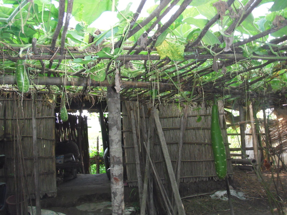 まず、チョー(浮島)で何が採れるか、ですが、主に野菜(トマト、ピーマン、玉ねぎ…)やマメです。写真は、それらの野菜をつくっている様子。