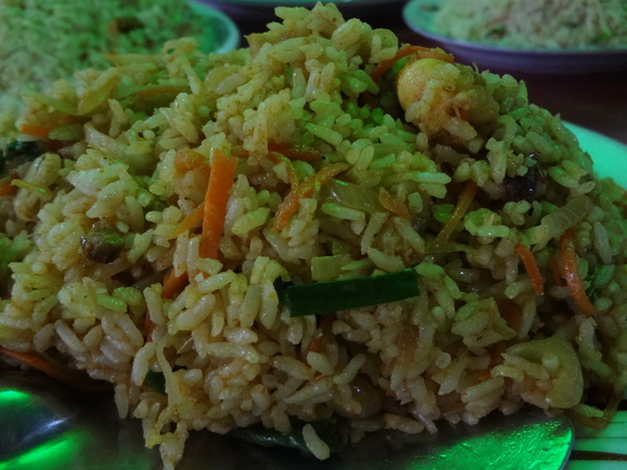 (ビリヤニという炒めごはんです。手でいただきます。)