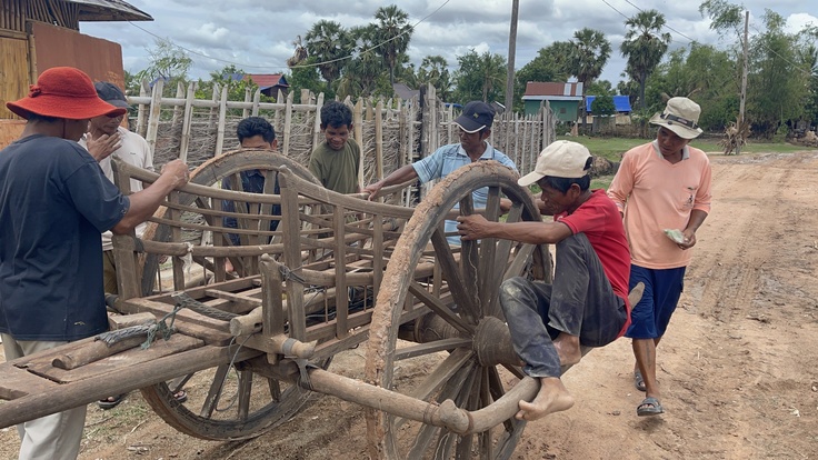 車輪まで木でできたカンボジアでも珍しくなってきた牛車を購入