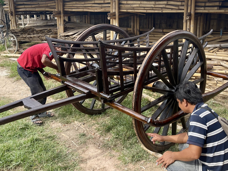 牛車の修理職人をしていたスタッフのポムさんが新品のように修理してくれました。