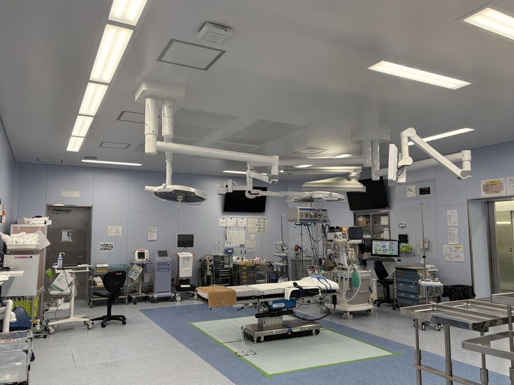写真の手術室は、現在は主に心臓手術の際に使用している手術室です。