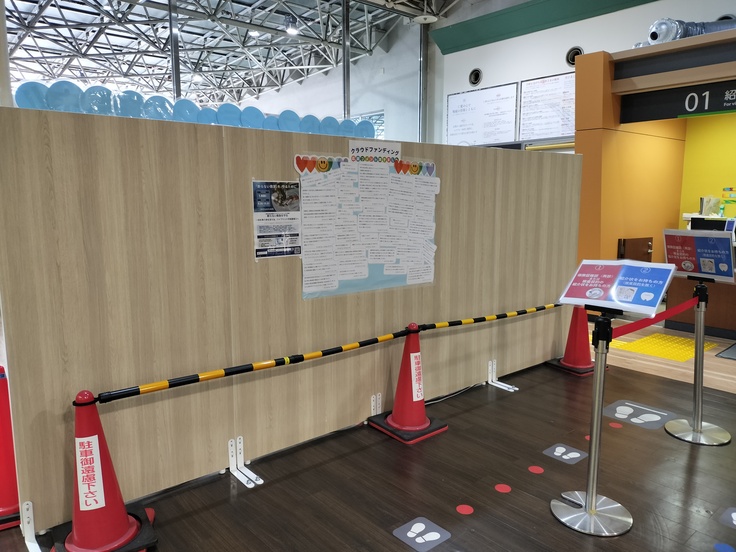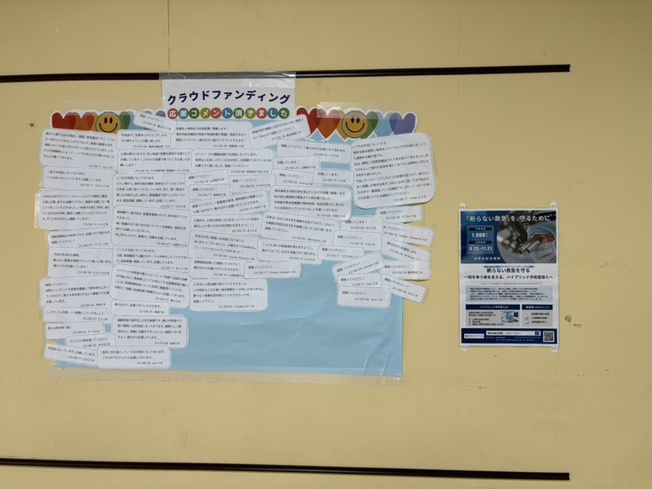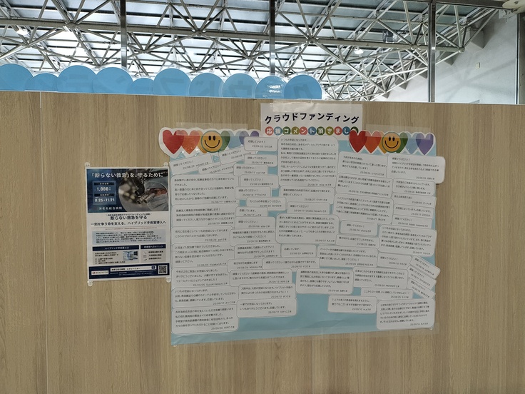 完成品は、正面入り口のクラウドファンディング掲示物の裏壁面に、設置しています。