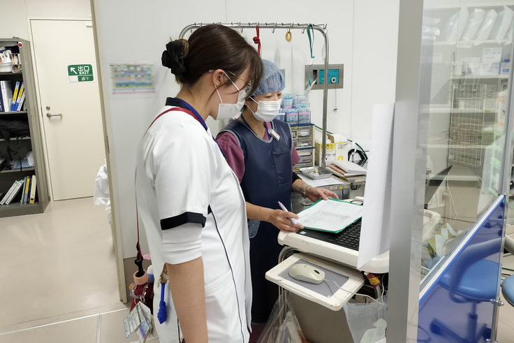 病棟でも継続して看護を行えるように、検査中の患者さんの訴えもお伝えしています。
