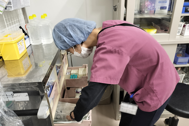 ▲いつ緊急検査が入ってもいいように、物品・薬品チェックは欠かせません。