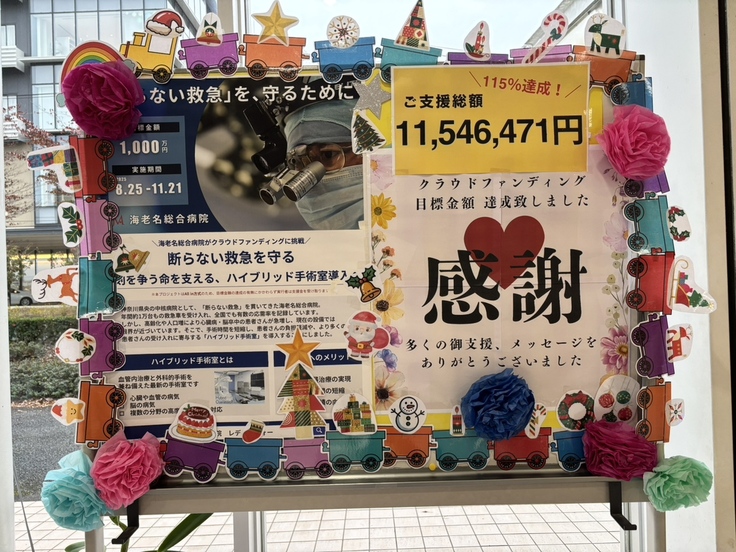 このたびは「海老名総合病院クラウドファンディング」に温かいご支援を賜り、誠にありがとうございました。皆さまのおかげで、無事に目標金額を達成することができました。