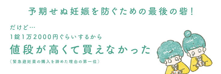 ただし、1錠8,000円~15,000円(※1)程度と高額であり、経済的に余裕がない学生など、金額の高さから諦めてしまう人たちがたくさんいます。2022年の調査(※2)によると、緊急避妊薬の購入を諦めた理由の第一位は「値段が高いから(全体の55%)」です。さらに、予期せぬ妊娠をした際に、年齢が若ければ若いほど、出産・中絶どちらを選んでも貧困のサイクルに入ってしまう可能性がとても高いんです。