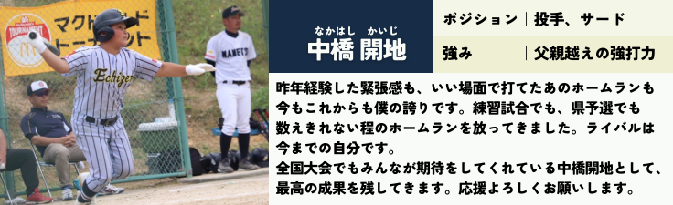 昨年経験した緊張感も、いい場面で打てたあのホームランも今もこれからも僕の誇りです。練習試合でも、県予選でも数えきれない程のホームランを放ってきました。