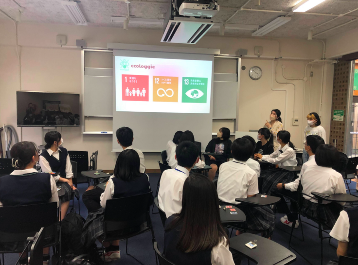 始めに、エコロギーで働くインターン生が高校生に向けて、プチ講義。
