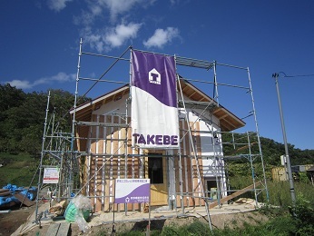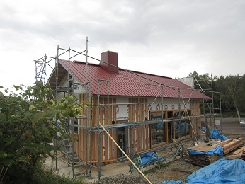 いよいよ外壁(カラマツ)が張られ始め、