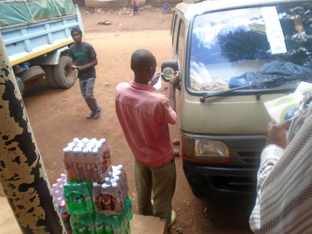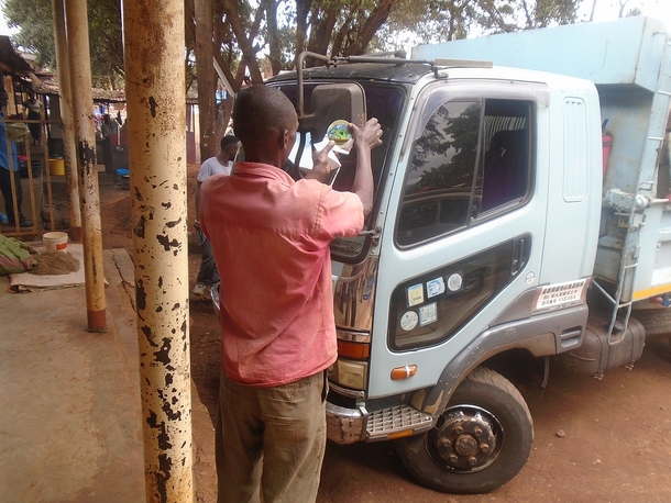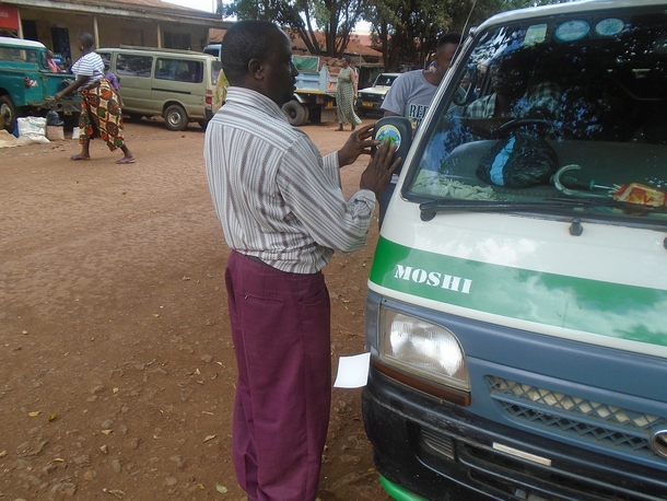村側では役場はもちろん、村の主要な社会的施設である教会、学校、診療所のほか、さらに効果的に広報していくため、タンザニアで市民の足となっているダラダラ(乗り合いバス)への貼り出しが実施されました(下写真)。いま毎日多くの市民の目に“エデンの森”の存在がアピールされていっています。