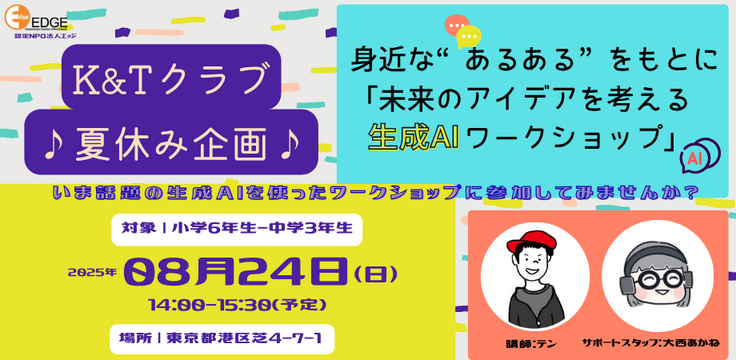 【こども企画】K&Tクラブ☆夏休みイベント&ワークショップのご案内
