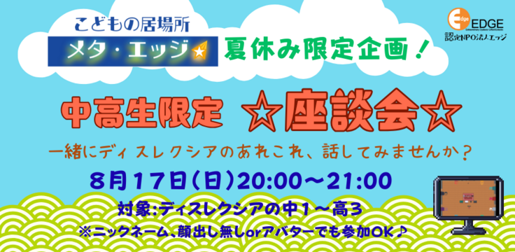 対象:中学生&高校生 (最大5名) ※申込〆切8/16