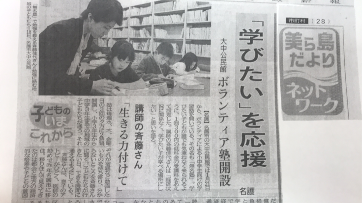 当時息子の喘息治療の為転居した沖縄県で、進学塾講師の経験を活かし、1回300円で通える学習塾「無名塾」を開設し、その継続の為プロジェクトを実施しました。