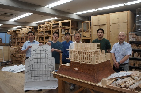 9月3日、中央工学校と当会との打ち合わせを行いました。江戸城天守の五つの各層は姿を現しておりますが、完成予定日に間に合わすため、上から三層は他の場所にて組立中だそうです。