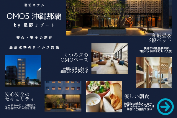 ◯宿泊は、安心、安全、衛生面を第一に考えた『星野リゾートOMO5沖縄那覇』を利用します