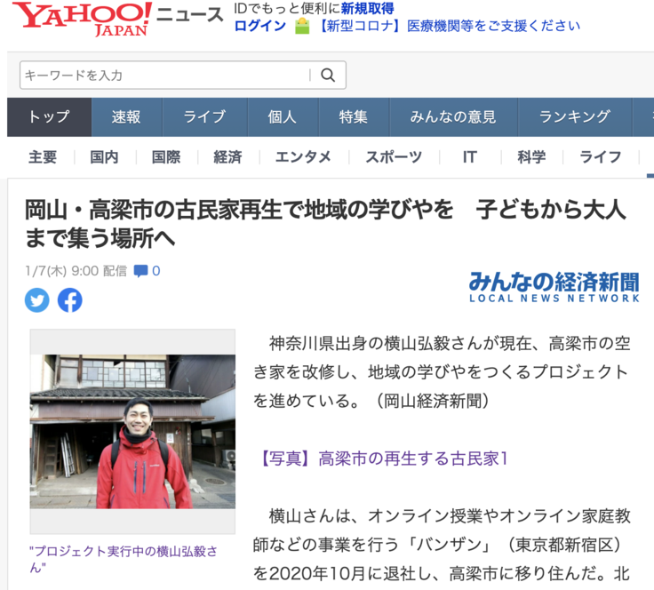 岡山経済新聞の取材記事がYahoo!ニュースにも掲載されていました( ゚д゚)
