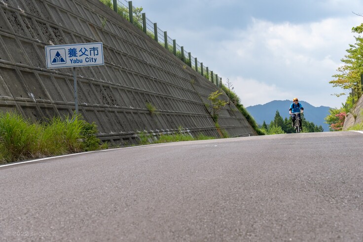 仕切り直して順調に自転車を走らせ、途中の峠も自分のペースでしっかり登り切り、養父市に入ります。