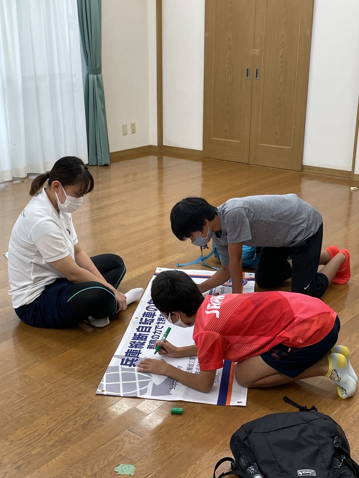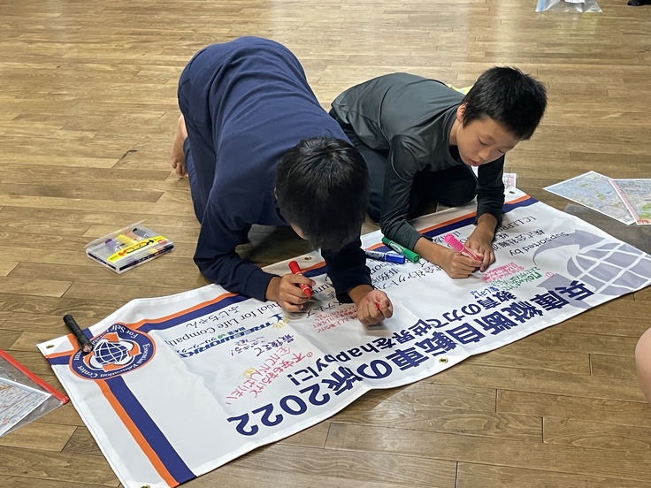 応援フラッグへ、この3日間の意気込みを書き込みました。