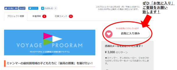 宜しければぜひ本プロジェクトページの「お気に入り」登録をお願い致します!新着記事が更新され次第、ご連絡が届く仕組みとなっております。