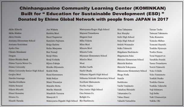 皆さまの心のこもったご支援で完成させることができる公民館の入口に