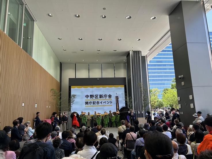 5月に行われた中野区役所の新庁舎お披露目では久しぶりの「出向舞」を行い、区民の皆様の安全なくらしを祈念させていただきました。