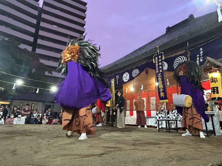 神職のお清めを受けた後獅子の奉納舞がスタートしました。