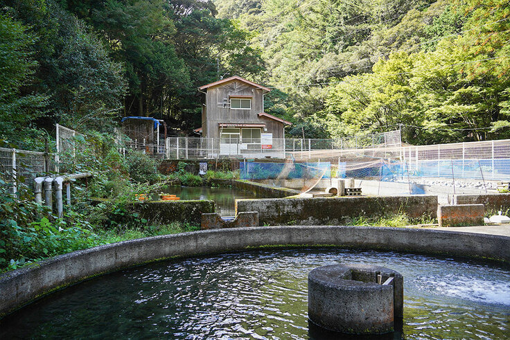 滑床のアマゴやニジマスは、藤ヶ生川口にある滑床養魚場で育てられています。滑床渓谷の渓流を活かした取り組みとして、1960年に地元目黒の有志で「滑床養鱒組合」を発足。