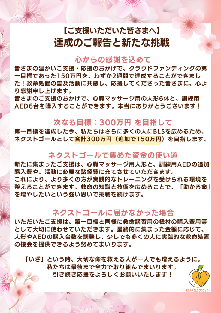●「愛媛大学BLSプロジェクト」オリジナルの救急処置マニュアルにお名前を記載(希望制)