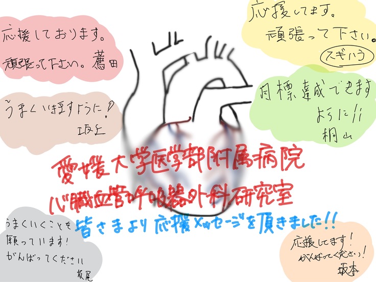 愛媛大学 心臓血管・呼吸器外科学講座の先生方から、応援の手書きのメッセージをいただきました!