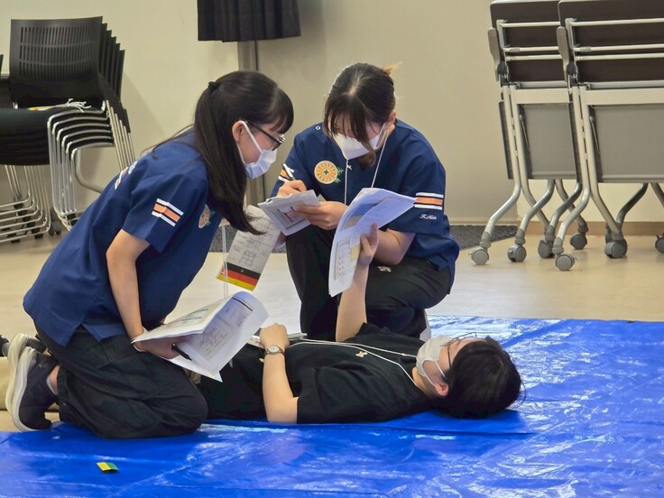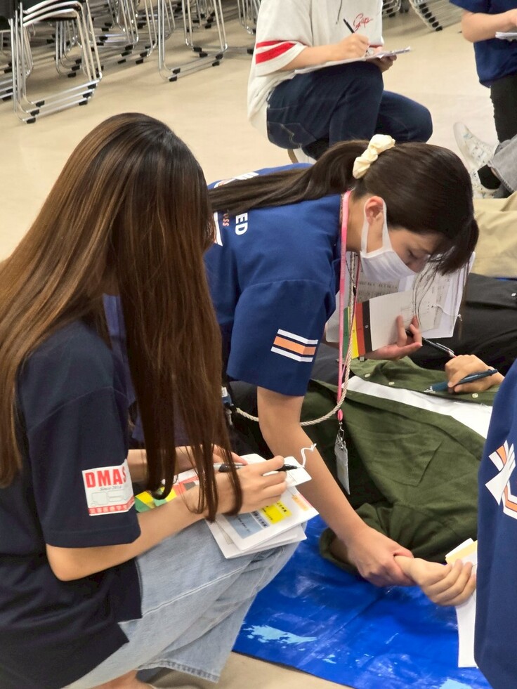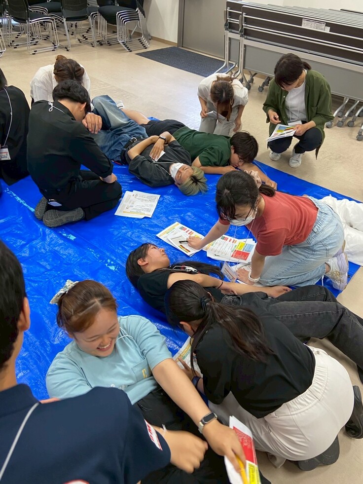 その後、BLS(一次救命処置)の実技練習と、トリアージ(災害時の優先度判断)のシミュレーションを実施しました。