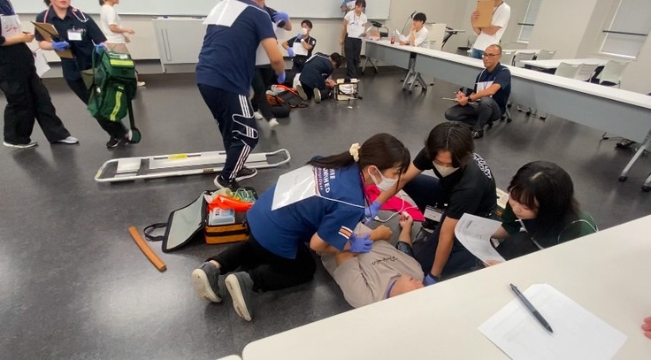 メディカルラリーとは、医療チームを組み、模擬患者に対する救急シナリオに挑戦し、その的確性や対応力を競う競技です。