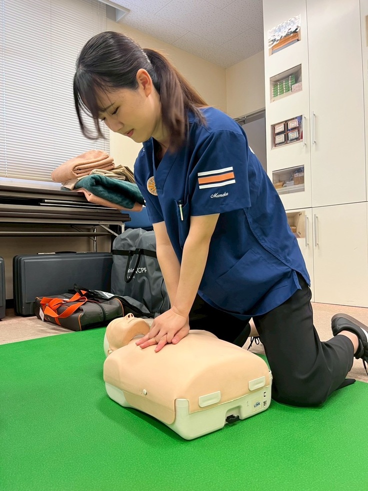 今回も、現場で活躍されている救命士さんから、“伝わる教え方”を丁寧に指導していただき、デモの見せ方、声の掛け方、ローテーションの回し方など、自分たちの講習へ取り入れたいヒントがたくさん教えていただきました。