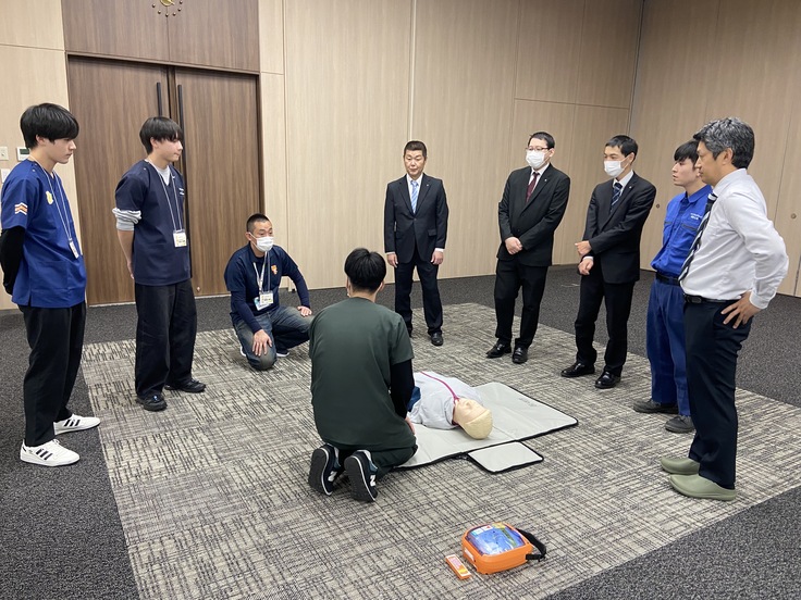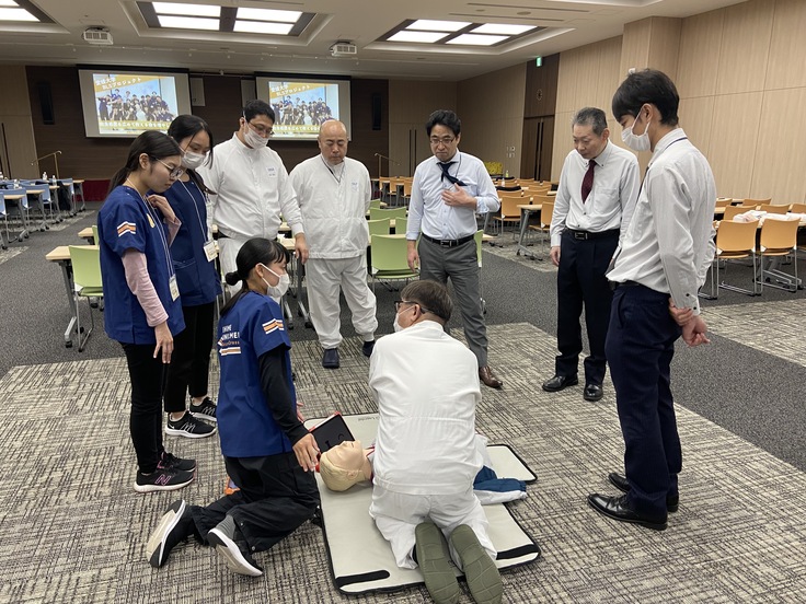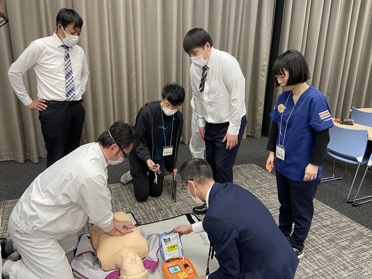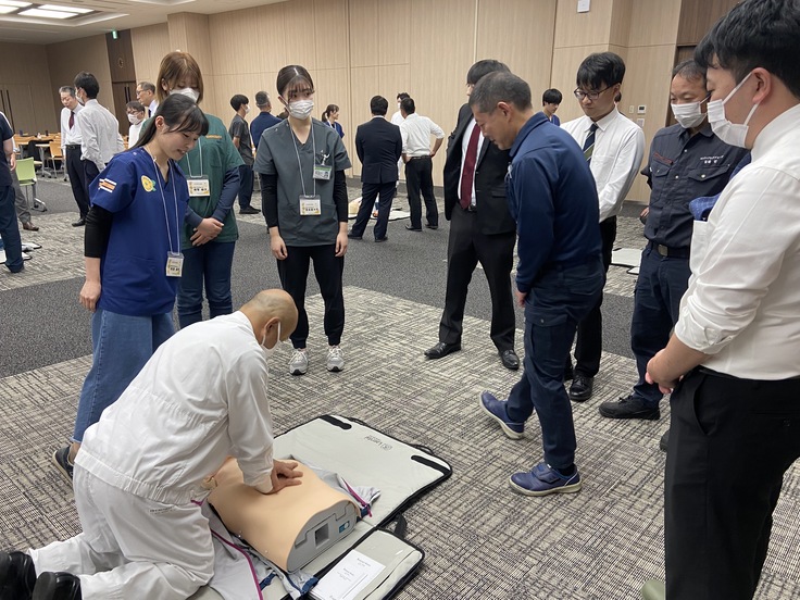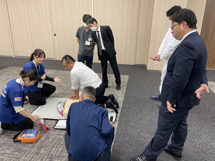日本食研さんでは、以前社員の方が突然倒れ、救急搬送されたことがきっかけで、「いざという時に備えたい」という思いから、定期的に心肺蘇生講習を開催されています。