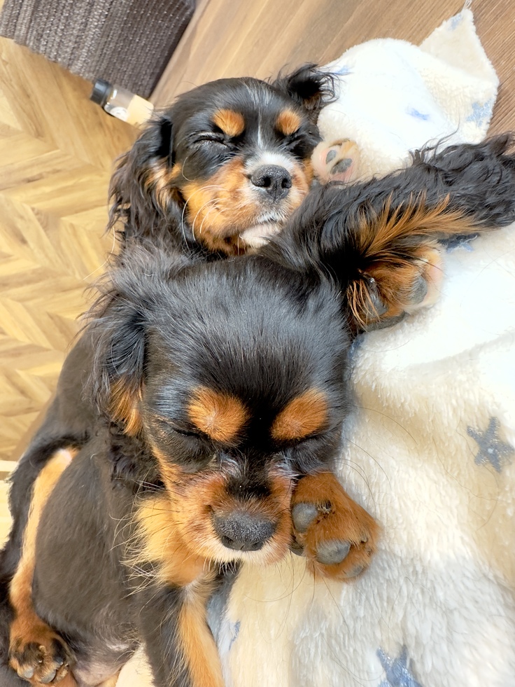副業帰宅後、リビングの犬ベットで横になっている初ちゃん🐶