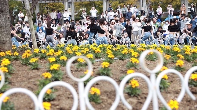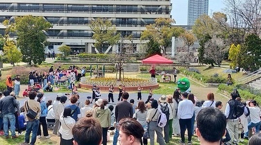 観覧者がダンスステージを囲んで、食べ物を食べたり、それぞれか観たいように観る