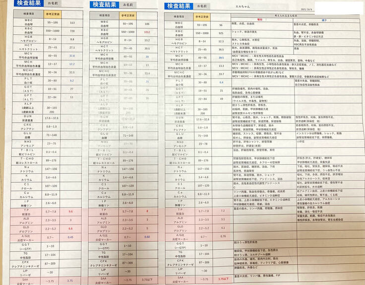 プロジェクト概要にも記載していますように、8月上旬より通院を始め、8月末にFIPと診断されました。