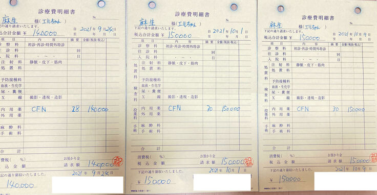 体重6.3kgのエルは毎日の投薬量が850mgとなり、一日分の薬代が21,250円となります。