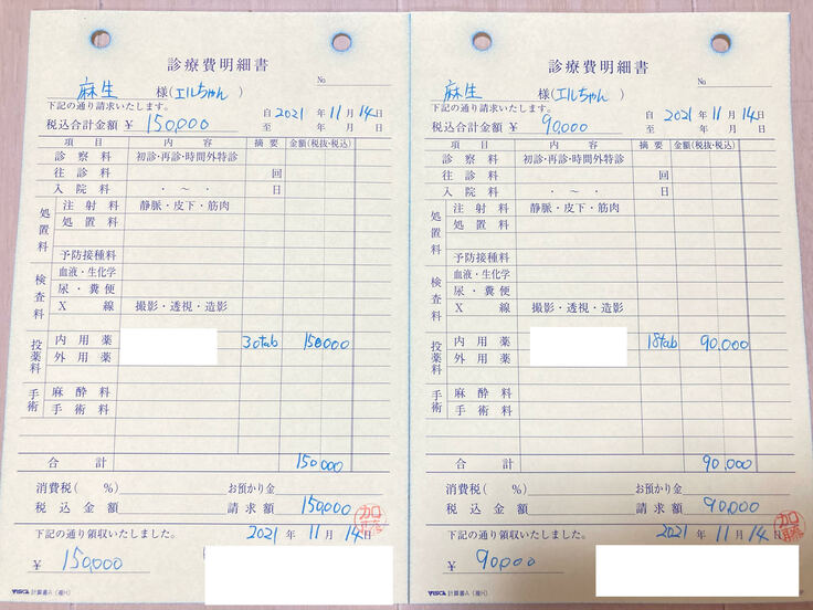 お薬代も、今回処方された11日分240,000円が最後の支払いでした。
