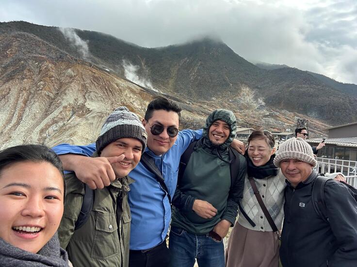 その後、海賊船で移動しながら紅葉が始まった山々や箱根神社の鳥居、そしてお目当ての富士山を見ることができました。エルサルバドルにも乾季に落葉する地域がありますが、普段は見られない彩り豊かな紅葉に感嘆していました。下船直前まで、寒い中でもデッキから景色を楽しんでいました。