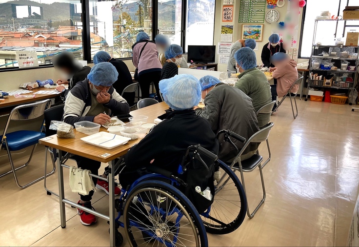 就労継続支援B型エミリィプラスは2016年、東広島市西条土与丸にて開設。先述のとおり、2021年より私の会社が事業承継しました。現在職員は私以外に個性豊かな頼れる女性たちが4名在籍。利用者さんは、身体障がい・精神障がい・発達障がい・精神疾患を持つ方々など現在27名が登録されています。