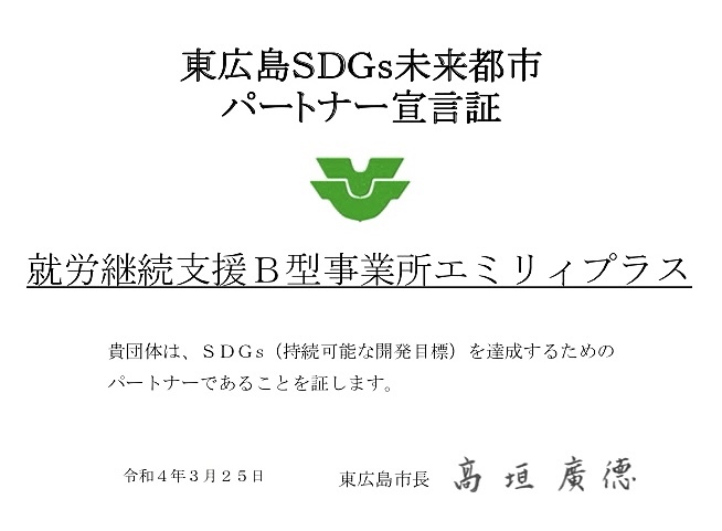 SDGs未来都市でもある東広島市からこれらの取り組みを成功させ、全国に広げる先駆的な事業所になって幸せの輪を広げていっていただきたいと心から応援しております。