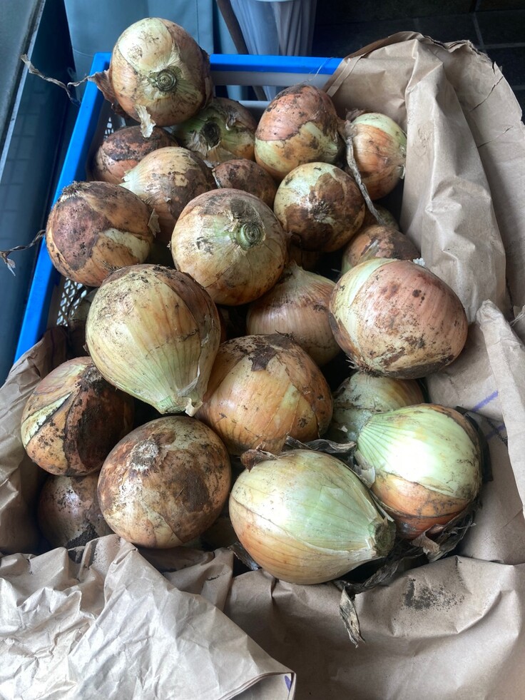 こどもたちは自分たちの手より大きい玉ねぎを両手で掴んで嬉しそうでした。