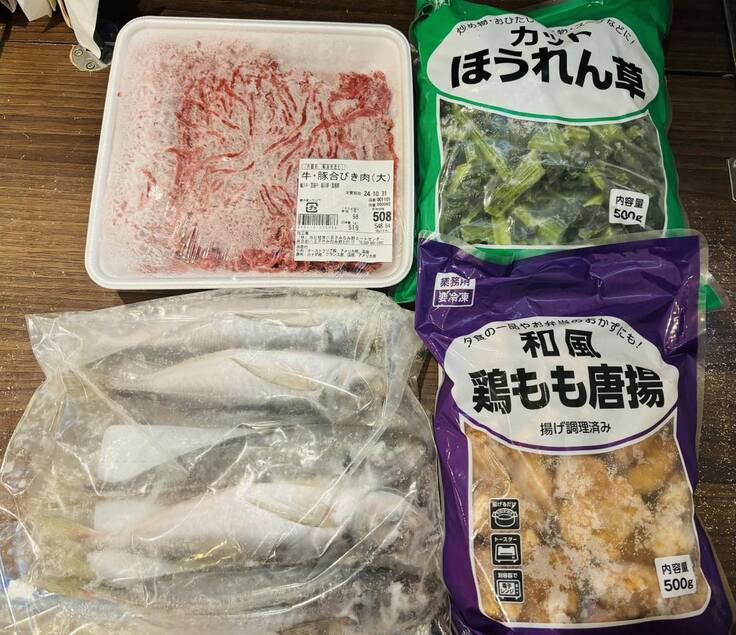・豚ひき肉 ・ほうれん草 ・鶏もも唐揚げ