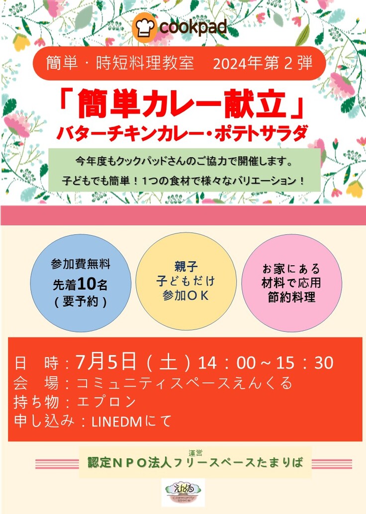 | 7月5日 | バターチキンカレー | ポテトサラダ | 5 | 3 | 8 |