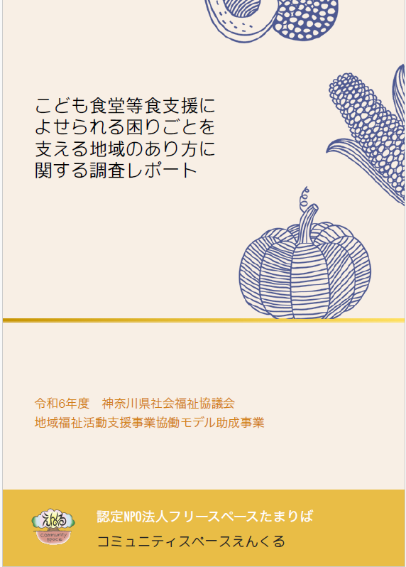 えんくるでは令和5年度からは、(福)神奈川県社会福祉協議会と共に協働モデル事業「福祉的支援を必要とする子どもとその家族を食を通して地域全体で支えるしくみづくり」に取り組んできました。昨年度実施した神奈川県内のウェブ調査では、多くの食支援団るしくみづくり」に取り組んでいる実態を報告書にまとめました。