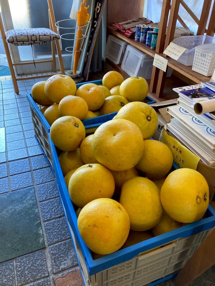 いつもお世話になっている農家さんから今回はおおきな柑橘《安政柑(あんせいかん)》をいただきました。顔より大きいのを見てこどもたちもびっくり、大喜びでした。