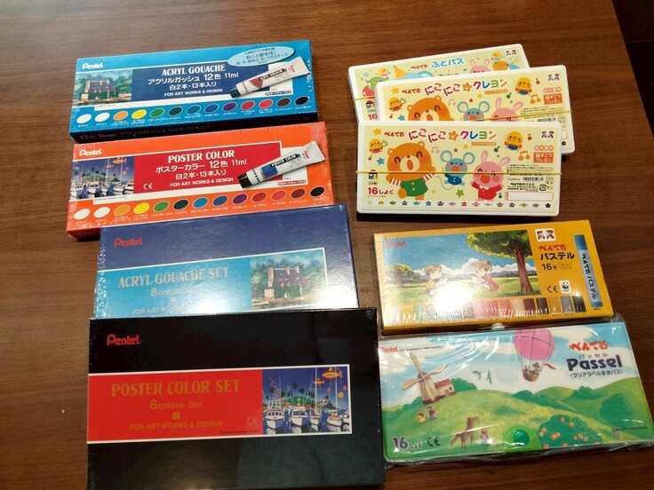 アクリルガッシュ、ポスターカラー、クレパス、クレヨンを寄贈いただきました。