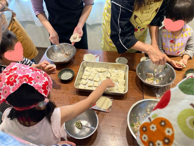 水餃子は簡単にできる包み方を未就学の子どもも楽しくチャレンジしていました。