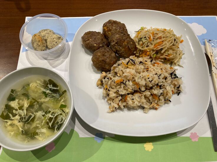 包丁を使わずに子どもだけでも出来る工程になっていて、ネギはぶんぶんチョッパーで刻み、キャベツは柔らかいので手でちぎって、レンジで温めるだけの簡単な下処理でした。